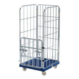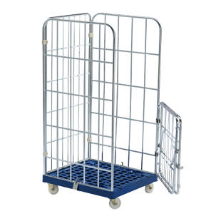 Pojazdný kontajner MODULAR , plastová pojazdná plošinka, mriežka z 3 strán, doska tmavomodrá