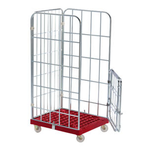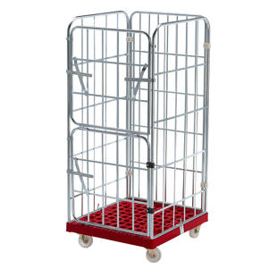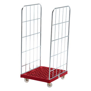 Pojazdný kontajner MODULAR , plastová pojazdná plošinka, mriežka z 3 strán, doska červená